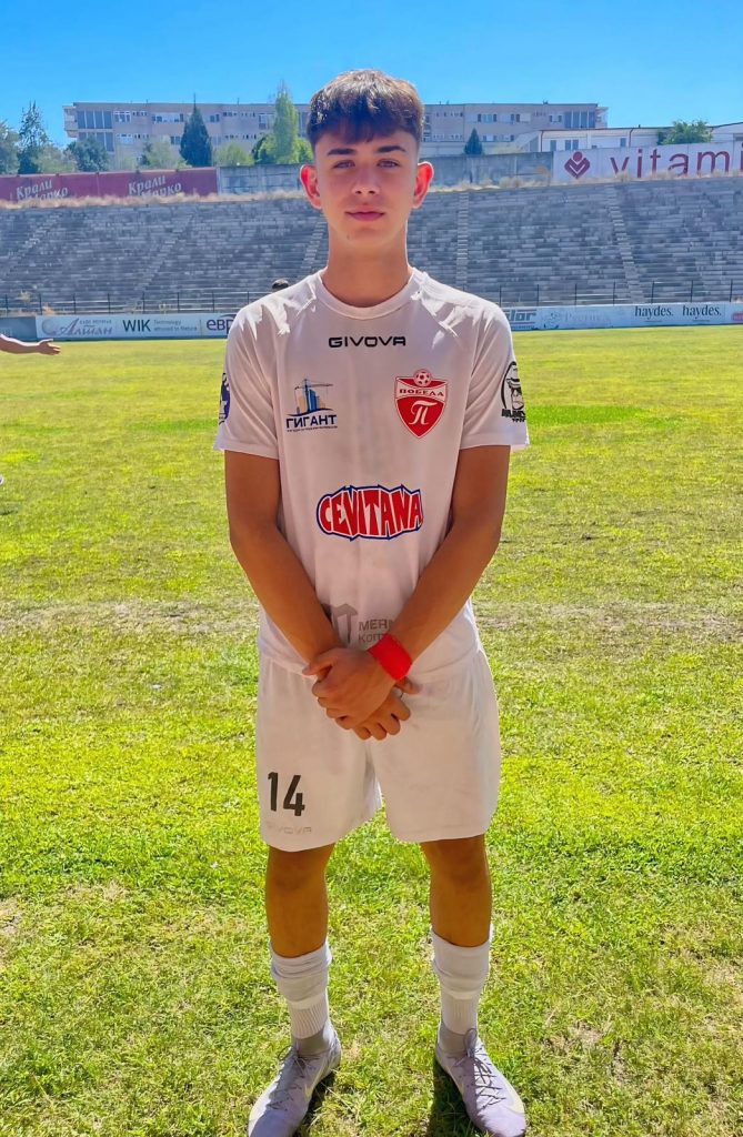 David Naumovski, currently as a Capitan is playing striker for the youth team of FC Pobeda Prilep in Macedonia, and hopefully soon both for the Macedonian or Swedish youth national teams Under 16 – U16. He also can play both as a winger, attacking midfielder and striker.